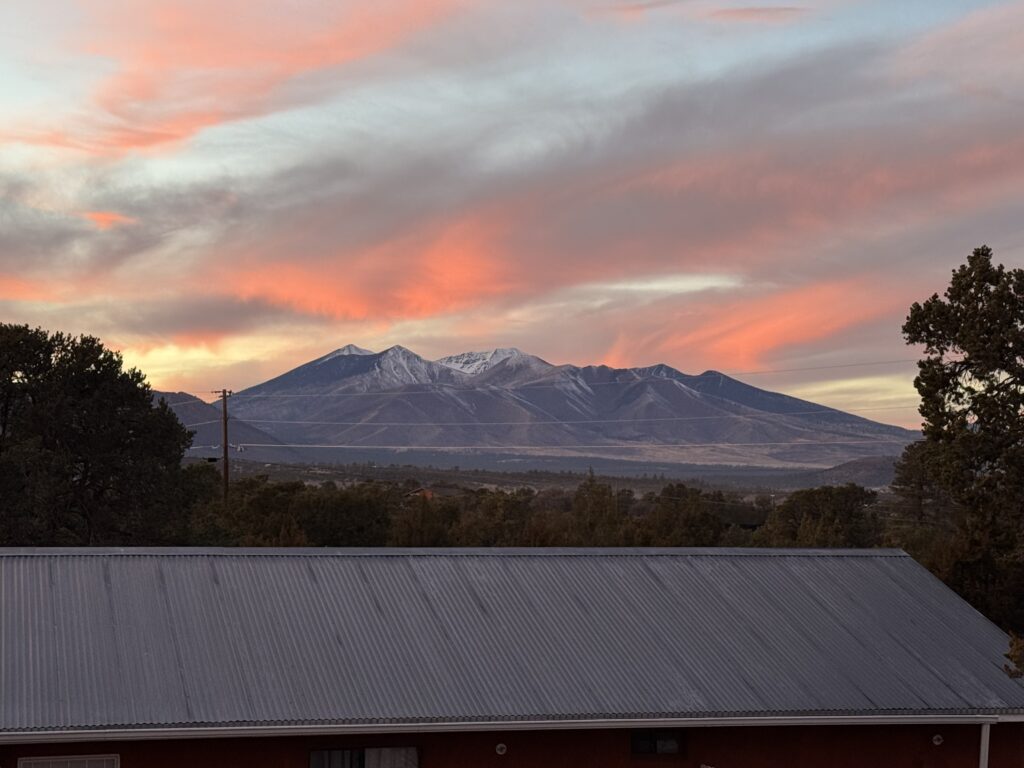 I was reflecting recently on how I came to inspect this house in Flagstaff a year ago. I can’t believe it’s already been a year! This property, with its big garage and fully furnished guesthouse, enabled me to take Edge of Adventure Tours to new heights! I can now offer fully all-inclusive motorcycle tours with my on-site Airbnb, rental motorcycles, and guided tour offerings! Some guests prefer to stay in the Airbnb and just ride day loops to all the interesting nearby destinations from Flagstaff for simplicity. Situated on my property about 10 minutes east of town, the Airbnb is tranquil and quiet, pet friendly, has a kitchen, grill, and patio for post-ride brats and beers, and has amazingly bright stars at night! I am also partial to the beautiful sunsets behind the mountain.